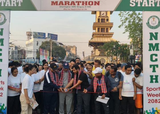 रंजित चौरसिया,वीरगंज २२ चैत। नेशनल मेडिकल कलेज तथा शिक्षण अस्पताल, वीरगंजद्वारा आयोजित ‘स्पोर्ट्स वीक २०८२’ अन्तर्गत उद्घाटन कार्यक्रम आज ...