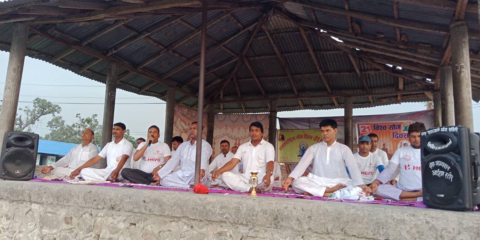 योग दिवसको अवसरमा मिर्चैयामा मेयरदेखि व्यापारीसम्मको योगासन