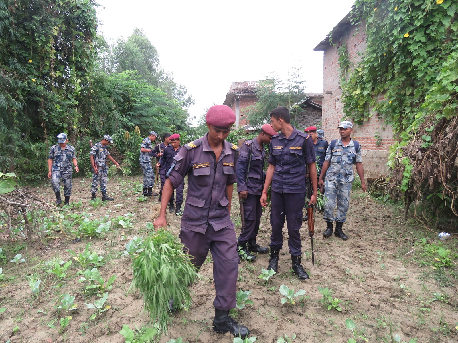 राम नारायण पंडित, सिरहा, २० असोज । विभिन्न स्थानमा लुकाईछिपाई लगाईएको अवैध गाँजा खेती फडानी गर्ने कार्यलाई मिर्चैया प्रहरीले निरन्तरता दिएका छन् । विशेष सुराकीको आधारमा ईलाका प्रहरी कार्यालय मिर्चैयाको प्रहरी नायब निरिक्षक रामबिकास साहको कमाण्डमा खटिएको प्रहरीको गस्ति टोलीले मिर्चैया नगरपालिका बडा नं. १ मनहर्वा स्थित बिभिन्न ब्यक्तिले लुकाईछिपाई खेतबारीमा लगाएको करिब ५ कठ्ठाको ५ हजार गाँजाको बोट फडानी गरि आज (शनिबार) नष्ट गरेका छन् ।