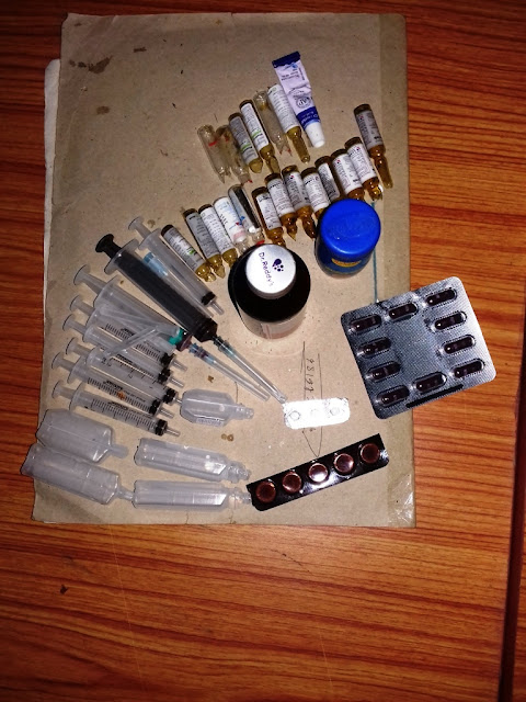 गोप्य सुचनाको आधारमा लहान नगरपालिका ४ स्थित रंजित यादवको घरमा खानतलासी गर्दा धानको बोरामा लुकाईछिपाई राखिएको अवस्थामा केएफ ८ एमएम लेखिएको २ थान पेस्तोल, ३०३ राइफलको गोली १ राउण्ड बरामद भएको छ । त्यसैगरी, प्रयोग भइसकेको डाइजेल्याब ८ एम्पुल, फेनार्गन ६ एम्पुल , लुपिजेसिक २ एम्पुल, सिरिन्ज ८ थान, नाइट्रोभेट ५ थान डाइलेक्स डिसी १ बोतल लगायतका लागुऔषध समेत बरामद भएको इलाका प्रहरी कार्यालय लहानका प्रहरी नायब उपरिक्षक राजेश थापाले जानकारी दिएका छन् ।