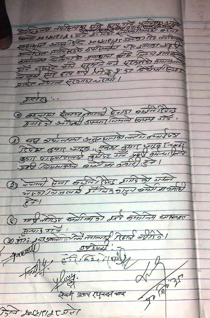 राम नारायण पंडित, सिरहा, २८ पौष । आन्दोलनरत पक्षर प्रहरीबिच ५ बुँदे सहमतिसंगै झण्डै ४ घण्टादेखि बन्द रहेको पुर्बपश्चिम राजमार्गको मिर्चैया सडकखण्ड संचालनमा आएको छ । ईलाका प्रहरी कार्यालय मिर्चैयामा भएको सर्बपक्षिय छलफलले घटनामा संलग्न नेपाली सेनाका जवान दिपेन्द्र शाही औषधी उपचार निजले स्वयं गर्ने, पक्राउ परेका दिपेश कुमार यादब, मुकेश कुमार यादब र चन्दर कुमार पासमानलाई कुटपिट गर्ने प्रहरीलाई प्रहरी नियमावली बमोजिम कार्बाही हुने, सेना दिपेन्द्र शाहीलाई सैनिक नियमाबली अनुसार कारबाही हुने, अबरुद्ध यातायत सुचारु गर्ने र पक्राउ परेका तिनै जनालाई रिहाई गर्ने सहमति भएको छ । सहमतिसंगै अबरुद्ध राजमार्ग सुचारु भएपछि आवागमन सहज भएको छ ।