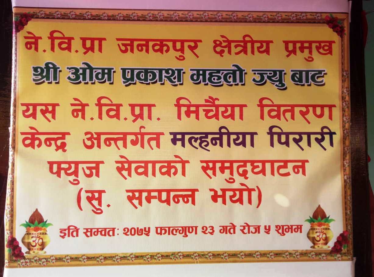 विद्युत प्राधिकरण मिर्चैया वितरण केन्द्रका प्रमुख दिगम्बर याबदको अध्यक्षतामा भएको कार्यक्रममा प्रमुख अतिथिको रुपमा नेपाल बिद्युत प्राधिकरण क्षेत्रिय कार्यालय जनकपुरका प्रमुख ओमप्रकाश महतो, विशिष्ट अतिथिका रुपमा मिर्चैया नगरपालिकाका मेयर श्रवण कुमार यादब, अतिथिका रुपमा बडा नं. १ का बडा अध्यक्ष धनिकलाल यादब र बडा नं. २ का बडा अध्यक्ष लक्ष्मेश्वर कापर लगायत स्थानियबासीहरुको उल्लेनिय उपस्थित रहेको थियो ।